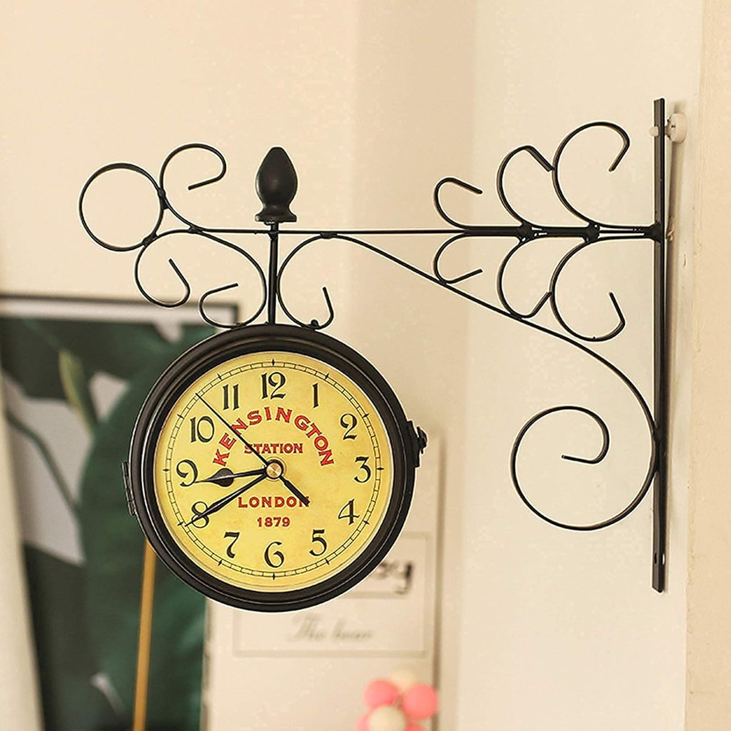 Welcome to my shop! This wall clock can easily fit various decoration styles to make your room unique. Suitable for living room, bedroom, study room, meeting room, office, lounge, coffee shop, bistro, garden, etc. Features: 1. Double-sided design, the time can be seen on both sides, and the time of two different countries can be set on both sides 2. Classic retro style, more creative 3. Use all metal shelves, firm and 4. Two styles, freely match your decoration style 5. Clear clock face numbers make it easier and faster to see the time 6. Choose high-definition glass, hard, transparent, anti-fog, see more clearly 7. High-quality movement, accurate time keeping, silent and silent 8. The metal hands match the retro clock paper, which is perfect Specifications: Type: Clock Material: Iron+ glass Quantity: 1 pc Item Color: As shown B: 2*AA b (not included) Size: 28*24*7.5cm/11.0*9.4*2.9inch (L*H*W) Weight: 0.8kg/1.76pound The Package Contains: 1*Double Side Wall Clock Battery not included After-sales service: If you have any questions, please feel free to contact us, we will reply you within 24 hours and provide you with the best solution